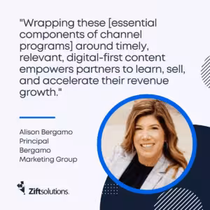 - Alison Bergamo, Principal for channel marketing consultancy Bergamo Marketing Group
