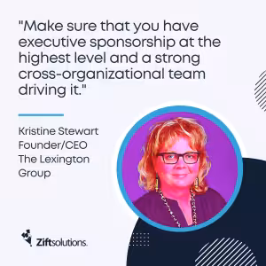 Stewart also points out that collective executive buy-in hinges on goal setting. “Set achievable goals along the journey so that everyone can feel successful, and the executive sponsorship sees the progress and continues to support [the initiative],” she says.