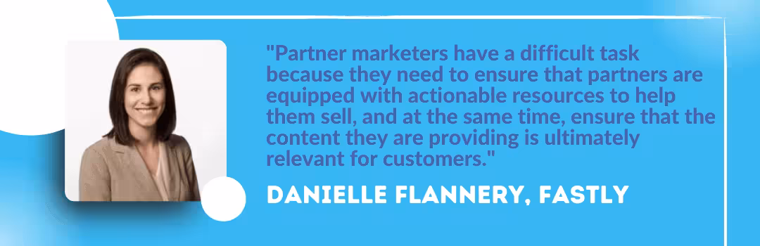Danielle Flannery from edge cloud network provider Fastly agrees. “For partners, this needs to be easy to execute. For customers, this needs to be valuable. Partner marketers have a difficult task because they need to ensure that partners are equipped with actionable resources to help them sell, and at the same time, ensure that the content they are providing is ultimately relevant for customers.”