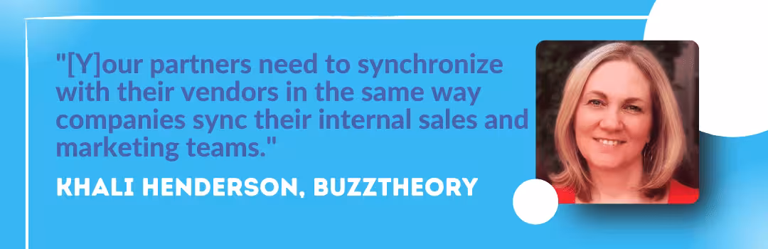 “We’re in a revenue marketing world, now,” she says. “Most of a buyer’s journey – even in B2B – happens online before a salesperson is contacted. That means that your partners need to synchronize with their vendors in the same way companies sync their internal sales and marketing teams. Collaborate with your partners by discussing the challenges they’re facing generating prospects and closing deals, and then address them in the campaigns you provide.”