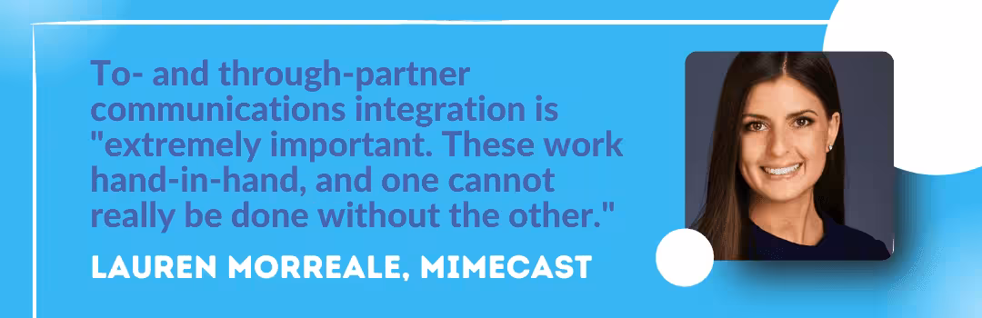 Mimecast’s Morreale stated that, in her view, to- and -through partner communications integration is “extremely important. These work hand-in-hand, and one cannot really be done without the other.”