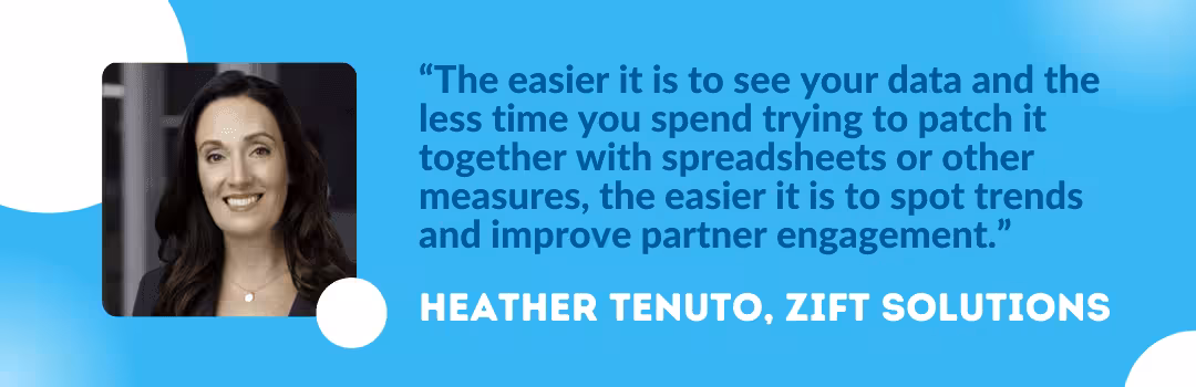 Finally, Zift’s Tenuto points out that centralizing activity and reporting can provide a clearer picture than cobbling together data from multiple sources. “Ideally, you’ll want to integrate all data sources into your PRM to provide a holistic dashboard,” she says. “The easier it is to see your data and the less time you spend trying to patch it together with spreadsheets or other measures, the easier it is to spot trends and improve partner engagement.”