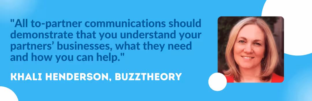 “All to-partner communications should demonstrate that you understand your partners’ businesses, what they need and how you can help,” says BuzzTheory’s Henderson. “Even when you’re communicating about your company, your products, or an award won, present the information in ways that benefit your partners, e.g., how this can help them prove your joint value to their client, close the sale and grow their revenue.”
