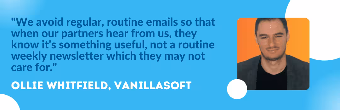 Our experts expressed a range of preferences regarding the frequency and format of partner communications (see point 4). However, they agree on the nature of the content; it must focus on providing value to partners rather than promoting you and what you need from them.