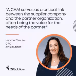 Zift Solutions’ Tenuto agrees, adding that partner advocacy plays a critical role for CAMs, especially those serving smaller partners. “A CAM serves as a critical link between the supplier company and the partner organization, often being the voice for the needs of the partner,” says Tenuto. “A partner that’s a one-person shop with a unique opportunity in hand will take that deal to the CAM that is responsive and routinely making their life easier.”