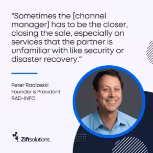 RAD-INFO’s Radizeski agrees, noting that due to the increasing complexity of technology, CAMs increasingly bring deals across the finish line. “Sometimes the [channel manager] has to be the closer, closing the sale, especially on services that the partner is unfamiliar with like security or disaster recovery,” notes Radizeski in his book on channel management. “Both the [channel manager] and partner need the sales; and this is more common than I once thought.”