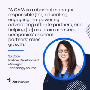 - “A CAM is a channel manager responsible [for] educating, engaging, empowering, advocating affiliate partners, and helping [to] maintain or exceed companies’ channel partners’ sales growth,” says Technology Source’s Cook.